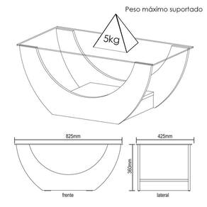 Peso máximo suportado: Painel: 12kg (02kg prateleira/ nicho central 10kg)/ Aparador Bar: 12kg (04kg por prateleira)/ Mesa de centro: 05kg.