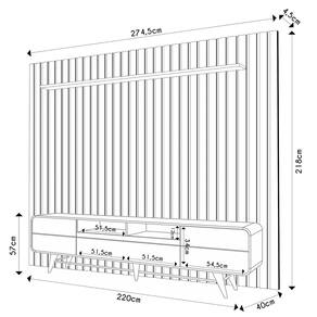 Dimensões dos Produtos Rack Época: 220 x 57 x 40 cm. Painel You: 274,5 x 218 x 4,5 cm. Peso: 143 kg total.