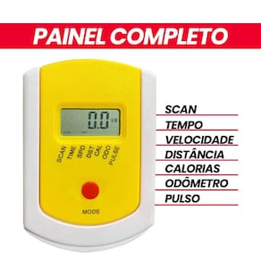 Projetado com design ergonômico e leitura facilitada, este painel oferece visualização rápida das principais métricas do exercício, ajudando você a manter o foco, controlar a evolução e atingir seus objetivos com mais precisão.