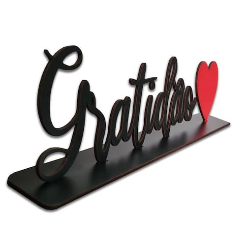 - Palavra Gratidão: 22cm de comprimento X 9 de altura;