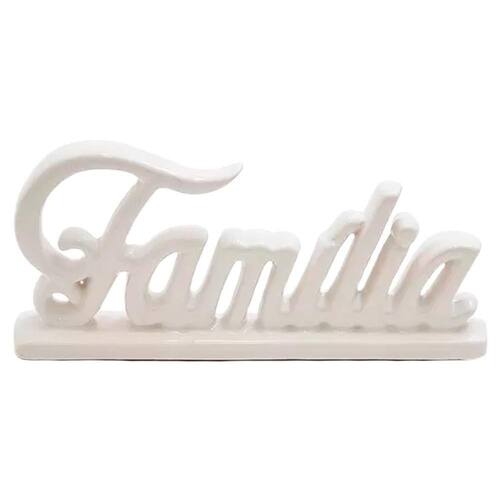 Palavra família em cerâmica decoração de sala e escritório - branca Palavra família grande em cerâmica decorativa - decoração de casa - escritórios e festas Palavra família grande é fabricado em cerâmica com foco na decoração de casa e escritórios, oferecendo qualidade e acabamento diferenciado, com muito charme, elegância e personalidade. O produto é ótimo para entusiastas e profissionais da decoração pois garante sofisticação, qualidade e durabilidade. Em diversas cores, eles combinarão perfeitamente com os mais diversos ambientes, enriquecendo a decoração de sua casa, escritórios, aparadores de sala, sendo também usadas na decoração de festas e buffet de aniversários e/ou casamentos, ideal para quem procura complementar sua decoração. Deixe sua casa, escritórios, sala, e festas em gerais com um clima agradável, alegre e descontraído, sendo também uma ótima opção de presente.Dimensões:- grande: altura: 14 cm x comprimento: 30 cm x largura: 10 cm.Características do produto:- palavra família grande em cerâmica ecológica de alta qualidade e durabilidade com pintura artesanal.- produzido por artesões profissionais seguindo um padrão de qualidade que atenda o gosto dos nossos clientesCuidados:- recomendamos o uso de pano levemente umedecido para sua limpeza.Garantia do produto:- o produto é muito bem acomodado dentro da caixa, e super embalado para evitar quebras, ainda assim possuímos um sistema de garantia e troca.Imagens meramente ilustrativas - produto artesanal, podendo variar de cor e/ou tonalidade Marca: Retrofenna Decor