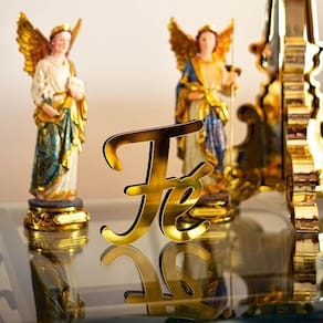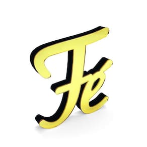 Palavra Fé Em Mdf Decoryou - Ref 101 Ouro Espelhado Quantidade: 1 peça MATERIAL: MDF e Acrílico TAMANHO: 7 x 7 x 1,7cm