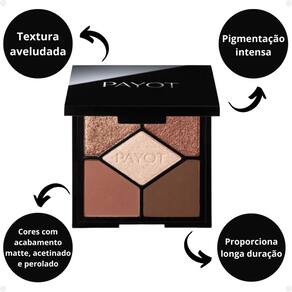 A paleta possui 2 cores no acabamento matte, 2 cores acetinadas e 1 perolada para produzir diversos tipos de looks, do dia a dia à festa. O estojo possui espelho e design sofisticado para completar a experiência. Fórmula com textura aveludada, pigmentação intensa e longa duração.