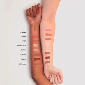 Face It All possui 8 cores. Os tons de acabamento matte são: ginger, um coral marcante, Sienna, o marrom indispensável, Taupe, que é puxado para o rosa, e Almond, um marrom mais claro. Já os cintilantes são: Sunset, um rosado claro, Hot Cocoa, o marrom radiante, Desert Sand, que tem um toque de areia dourada, e Cooper, o rosado mais escuro. Assim, a paleta consegue tanto criar um efeito esculpido e dar uma corada nas maçãs do rosto como destacar áreas estratégicas e produzir um efeito glow maravilhoso. Aqui, a versatilidade é nosso lema