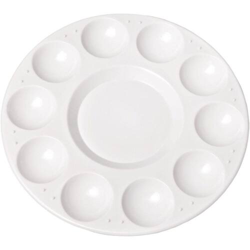 Godê plástico com 10 cavidades e aproximadamente 17cm de diâmetro fabricada em plástico de alta qualidade. Ideal para todo e qualquer trabalho onde haja a necessidade simultânea de diversas cores de tinta. Resistente a solventes, pode ser usada com qualquer tipo de tinta.