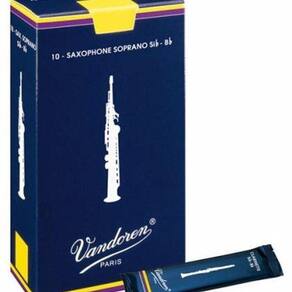 Palhetas Vandoren Tradicional Sax Soprano Nº 3 A palheta vandoren tradicional foi concebida para produzir uma qualidade de som extremamente puro, devido a uma ponta de palheta muito fina (a área da palheta que apresenta a máxima vibração). Indicada para músicos de diversos estilos musicais, sendo muito procurada por jazzistas e eruditos. Apresenta excelente resposta em todos os registros e permite ataque pianíssimo nas notas mais altas, com flexibilidade para execução de grandes intervalos em legato ou staccato. Isto acontece devido a forma da sua ponta, que é muito fina, e a maior quantidade de cana na coluna vertebral, no meio da palheta.