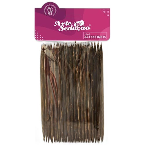 O Palito Indiano Tucum 2 Pontas é um produto artesanal feito de palmeira Tucum madeira . Com 100 unidades, é perfeito para uso de manicures, proporcionando um ótimo acabamento nas unhas.