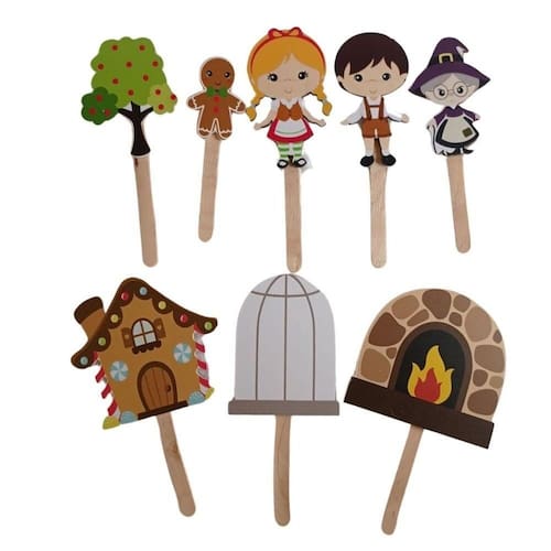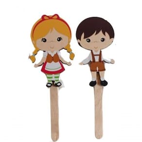 Palitoches Personagens João e Maria Bonecos em MDF Fantoche Educativo Teatro