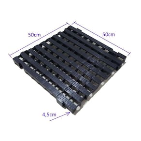Estrado Plástico Preto em PP (Polipropileno) nas medidas de 4,5x50x50cm.