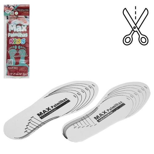 Palmilha infantil ajustável em EVA, ideal para calçados do tamanho 21 ao 32. Ajuda a ajustar o tamanho do calçado para um melhor conforto. Composição em EVA.