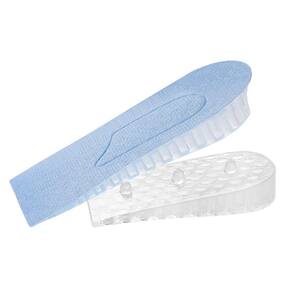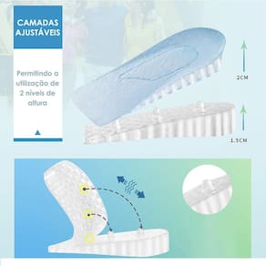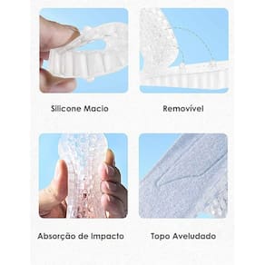 Especificações Técnicas - Modelo: EAN4075 (2 níveis de altura ajustável). - Material: Silicone/PVC (maciez e durabilidade). - Cores disponíveis: Transparente e Azul Claro. - Dimensões: 12,7 cm (comprimento) x 7 cm (largura). - Altura das palmilhas destacáveis: 2 cm + 1,5 cm (total 3,5 cm). - Peso: 50g (leve e confortável).