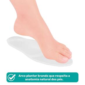 Arco plantar brando que respeita a anatomia natural dos pés.