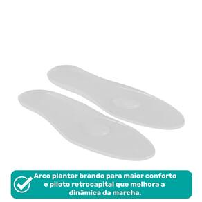 Arco plantar brando para maior conforto.