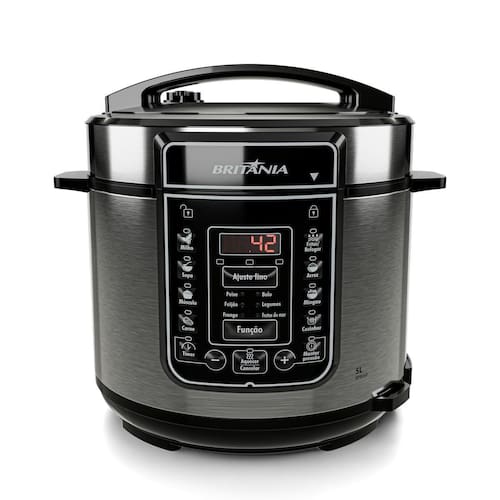 A Panela de Pressão Elétrica BPP05P da Britânia é a aliada perfeita para quem busca tecnologia e segurança na cozinha. Com sua generosa capacidade de 5 litros, ela é ideal para preparar refeições completas para toda a família em uma única etapa. Seu design moderno em inox e o painel digital oferecem controle total, permitindo fritar, refogar e programar o preparo de suas receitas com precisão e facilidade.