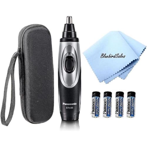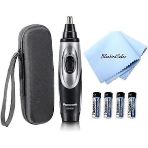 Panasonic Shaver ER430K Aparador de nariz, orelhas e pêlos faciais úmido/seco com sistema de limpeza a vácuo Estojo de viagem, pano de limpeza e 4 baterias AA