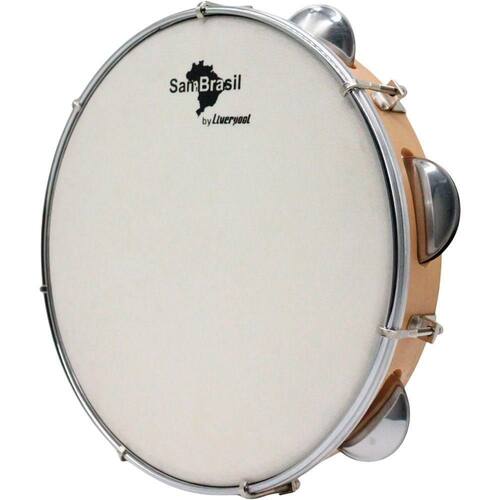 Pandeiro 10? Premium Pele Branca SamBrasil Liverpool ? Qualidade, Resistência e Timbre Profissional