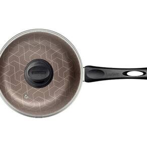 Corpo de alumínio com espessura de 1,8 mm que proporciona cozimento rápido e uniforme. Revestimento interno e externo de antiaderente Starflon Max que não gruda, é fácil de limpar, mais durável e não é prejudicial à saúde, pois é livre de PFOA. Tampa de vidro temperado, com saída de vapor e borda de aço inox. Cabo de baquelite antitérmico e pegador de nylon que oferecem segurança durante o manuseio. Pode ir à máquina de lavar louças facilitando seu dia a dia.