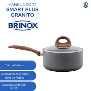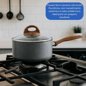 A Panela 18cm Ceramic Life Smart Plus Brinox na cor Granito é a escolha ideal para quem valoriza funcionalidade, saúde e um toque de sofisticação na cozinha. Com revestimento interno cerâmico antiaderente, ela permite preparar alimentos com menos gordura, sem grudar, garantindo uma limpeza muito mais prática. Seu design moderno e elegante na cor Granito se destaca em qualquer ambiente, unindo beleza e eficiência no dia a dia. O cabo antitérmico com toque soft proporciona maior segurança e conforto ao segurar, mesmo durante o preparo em altas temperaturas. Compatível com fogões a gás, elétrico, vitrocerâmico e por indução, é extremamente versátil para diferentes tipos de preparo. Além disso, é livre de PFOA, tornando-se uma excelente opção para quem busca uma alimentação mais saudável e consciente, sem abrir mão da durabilidade e da qualidade Brinox. Especificações Técnicas: Marca: Brinox Linha: Ceramic Life Smart Plus Modelo: Panela com tampa de vidro temperado Cor: Granito Diâmetro: 18 cm Altura: 9 cm Capacidade: 1,55 Litros Comprimento total com cabo : 34 cm Material da panela: Alumínio com revestimento cerâmico antiaderente Revestimento interno: Cerâmico Mineral Resist livre de PFOA Material do cabo: Baquelite antitérmico Material da tampa: Vidro temperado com saída para vapor e borda em aço inox Compatibilidade com fogões: Gás, elétrico, vitrocerâmico e indução Marca: Não Informado Ean: 7898778880022