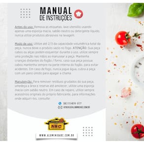 Dicas de uso: Utensílio culinário, para o preparo de diversos alimentos, suas características proporcionam um cozimento rápido e homogêneo.