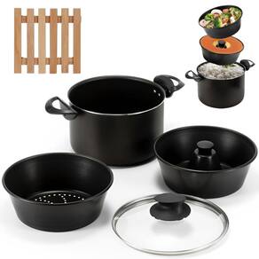 - 3 em 1 Funcionalidade: Cozinhe pudins, alimentos no vapor e em banho-maria com uma única panela.