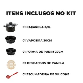 01 Panela 3 em 1 02 Descansos de Panela 01 Escumadeira de Silicone Marca: Não Informado