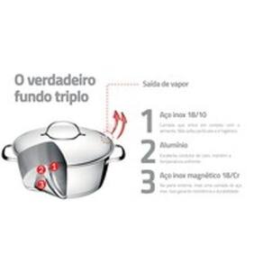 Material: aço inox. Produto com fundo triplo (aço inox + alumínio + aço inox).