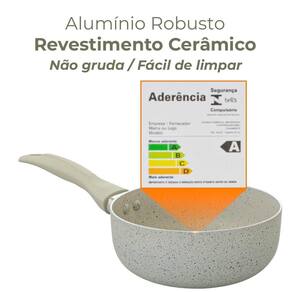 É produzida em alumínio na cor vanilla com revestimento cerâmico marble classificação A do Inmetro, não gruda, é mais fácil de limpar e mais saudável, pois necessita de menos óleo para o cozimento e é livre de metais pesados.