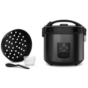 Tampa com visor de vidro, revestimento antiaderente, luz indicadora de funcionamento, kit com colher, panela interna removível, bandeja para cozimento e copo medidor.Lâmpada piloto