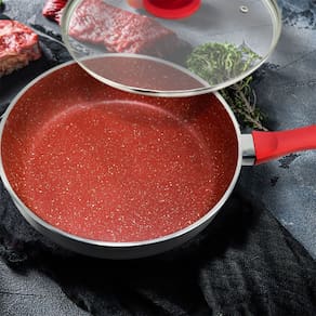 A panela possui revestimento interno Redstone Antiaderente, que promove mais eficiência e facilidade durante o cozimento. Os alimentos não grudam, devido as 6 camadas de proteção em estrutura de alumínio com fundo triplo de 4,5mm. A tampa de vidro traz saída de vapor que combina beleza e segurança para você fazer de tudo, inclusive sem se queimar pois o cabo em baquelite emborrachado é super resistente a altas temperaturas.