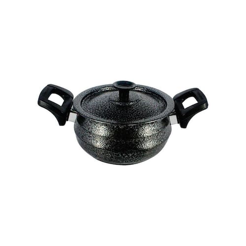 Panela Bojuda Alumínio Fundido Craqueada Alça Baquelite Preta N06 Todas as nossas panelas são confeccionadas com alumínio Maciço de excelente qualidade e elevado grau de pureza, O que impede o risco de trincas e fissuras. Alimentos Cozidos rapidamente mantendo temperatura elevada mais Tempo, levando a economia de Gás. Produto com excelente Qualidade. Possuem cabos de madeira para facilitar o Manuseio. Produto de Alta Durabilidade, mais beleza e Comodidade em sua cozinha. Pode ser utilizada em fogão a Lenha, fogão à gás ou elétrico. Produto de fácil limpeza, Pode-se utilizar esponja de aço somente por dentro sem Risco de danificar o material. Qualidade Imensurável. Características do Produto: Medidas: 18x9,5cm. Peso: 0,700g. Litragem: 2L. Espessura: 3mm. Material: Alumínio Fundido Polido. Alça: Baquelite. Itens Inclusos: 01 Panela Bojuda Alumínio Fundido Craqueada Alça Baquelite Preta N06 Código: 599-DF.P Marca: Não Informado