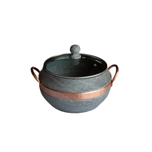 Panela Bojuda Caldeirão em Pedra Sabão Tampa Vidro 3,0 Ltrs - SÃO JOSÉ
