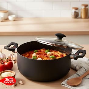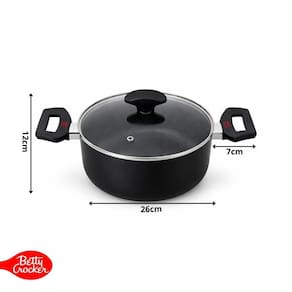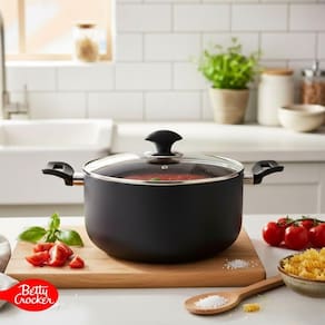 A panela caçarola de 26cm da Betty Crocker foi produzida em alumínio de 2,3mm de espessura, garantindo excelente condutividade térmica e proporcionando um cozimento rápido e uniforme, mesmo em fogo baixo. Seu tamanho é ideal para preparar receitas para toda a família, como arroz, molhos, carnes, legumes e massas.