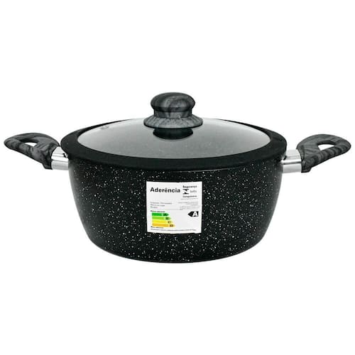 Características: Marca: Casambiente Referência: AL140 Modelo: Viena Zebra Material da Panela: Alumínio Material do Cabo: Baquelite Soft-touch Material da Tampa: Vidro Temperado com borda em silicone Espessura: 2,5mm Cor: Preto Quantidade: 1 peça Marca: Não Informado