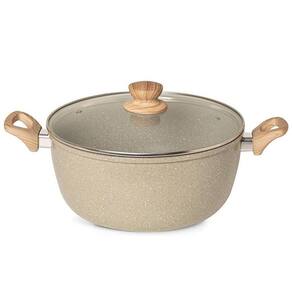 A cor da caçarola é Bege Cream Marmorizado, bem neutra e sofisticada que certamente combina com a decoração do ambiente e deixa qualquer cozinha mais moderna e aconchegante!