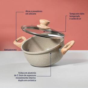 Esta panela caçarola é produzida em alumínio com revestimento de 2 camadas de Nanoparticulas de Biocerâmica, proporcionando um cozimento rápido e uniforme do seu alimento, além de ser super fácil e rápido de lavar.