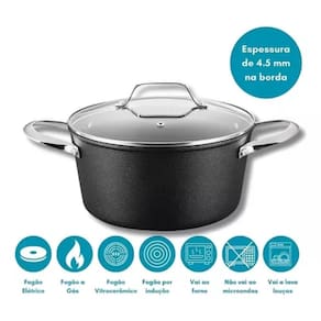 Panela Caçarola Black Rock em Alumínio Indução Fundo Triplo 20cm 2,8L Preta 10035 Mimo Style