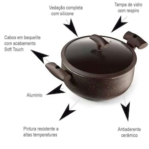 Seus preparos ficarão mais saudáveis e saborosos com as panelas caçarolas, oferecendo o que há de mais moderno para sua cozinha essa panela além de prática necessita de uma quantidade mínima de óleo para cozinhar seus alimentos. Fabricada em alumínio com 3mm de espessura, possui revestimento cerâmico e seu interior antiaderente facilita o preparo e sua limpeza. Possui cabos em silicone com acabamento Soft touch isotérmicos não esquentam , permitindo seu manuseio com segurança e facilidade. Seu fundo exclusivo conta com uma perfeita distribuição de calor, cozinhando em menos tempo e colaborando no custo benefício, indicada também no uso em fogões de indução. Sua tampa de vidro temperado conta com saída para vapor, bordas de silicone removível para uma melhor higienização. A cerâmica antiaderente é capaz de conduzir o calor do fogo para acelerar o cozimento e não libera componentes tóxicos na preparação dos alimentos. Use somente utensílios de materiais não abrasivos para não riscar a superfície. Marca: Não Informado