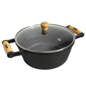 Panela Caçarola De Ferro Alça De Madeira Tampa Vidro 22Cm
