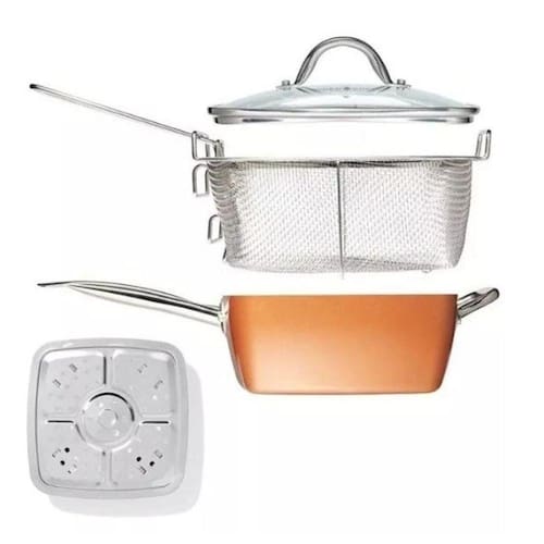 Esse novo produto foi concebido para substituir todas as suas necessidades de múltiplas panelas e utensílios, como fritadeira, wok, assadeira, assadeira, panela de arroz, panela a vapor e panela. Com toda a variedade de recursos culinários reunidos em apenas uma frigideira funda, você pode facilmente preparar cada prato que você ama, de sopa a guisado para pratos principais e sobremesas. Pizza, batata frita, macarrão, queijo frito, risoto, frango crocante, panquecas, bolo e muito mais receitas do dia-a-dia ou requintadas são possíveis com esse único produto.