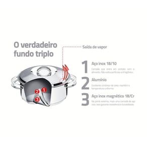 A Caçarola Funda em Aço Inox com Fundo Triplo com Tampa e Alças 16 cm de diâmetro 1,8 L é perfeita para todo o tipo de cozimento, tornando a sua cozinha ainda mais completa. A Caçarola funda oferece praticidade e um design que irá brilhar na mesa na hora de servir, mas não irá brilhar mais que a sua receita. Por contar com fundo triplo (aço inox + alumínio + aço inox) ela oferece um cozimento uniforme dos alimentos, além de mantê-los aquecidos por mais tempo. Feita totalmente de aço inox na parte interna ela não solta nenhum tipo de resíduo, fazendo com que o sabor seja natural e os alimentos mantenham-se saudáveis. Basta escolher a receita e se aventurar na cozinha com a linha Solar da Tramonti na.