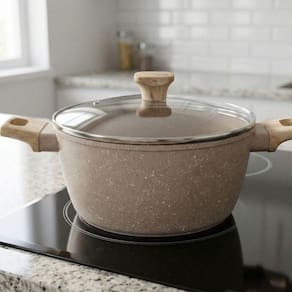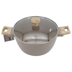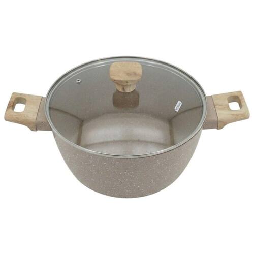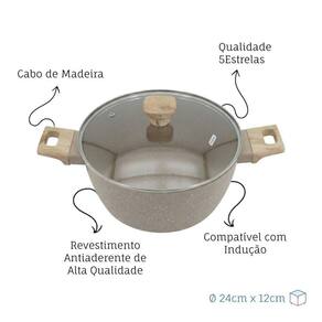 Caçarola de 24cm com revestimento antiaderente para indução e cabo de madeira, linha Marble