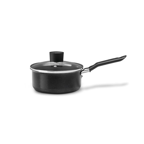 Prática e segura, a panela com tampa da linha Ebony, de 18x8cm com capacidade de 1,75 litros, tem estrutura de alumínio que dissipa melhor o calor cozinhando o alimento por igual e mais rapidamente. Já o revestimento interno antiaderente não deixa o alimento grudar mesmo com uso reduzido de óleo. O material também facilita a limpeza. A tampa é de vidro temperado e possui saída para o vapor. Com cabo de braquelite, material que não aquece, o manuseio do utensílio fica mais fácil e seguro. A pintura externa preta, trazendo maior versatilidade e sobriedade para a sua cozinha._x000D_