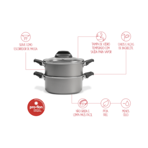 Aproveite o melhor dos seus alimentos com a tecnologia da Cozi-Vapore Brinox Cor & Vapor Prata antiaderente, com 16 cm. Legumes, verduras, frutas e carnes delicadas sempre no ponto certo. O conjunto Cozi Vapore possui estrutura em alumínio, cozinha por igual e mais rápido consumindo menos energia, trazendo um diferencial de cozinhar os alimentos através do vapor. Revestimento antiaderente pro-flon não deixa o alimento grudar, facilita a limpeza e é livre de metais pesados e elementos prejudiciais a saúde (PFOA free). A linha Cozi Vapore possui corpo de 1,2 mm de espessura em alumínio com pintura antiaderente garantindo a durabilidade do produto. Os cabos, alças e puxadores são feitos em baquelite, não esquentam e proporcionam um toque confortável e ergonômico das panelas. Suas tampas são de vidro temperado com bordas em aço inox e saída de vapor, facilitando a visibilidade durante o cozimento. A Cozi-Vapore pode ser utilizada nos fogões à gás (comum), vitrocerâmico e elétrico. A Brinox está sempre inovando e pensando no melhor para as suas panelas sejam elas comuns ou de pressão, além dos demais utensílios de apoio ao seu dia a dia. Afinal, você merece os produtos Brinox na sua casa! O Grupo Brinox, com desenvolvimento e produção no Brasil, é um dos maiores fabricantes de utilidades domésticas do Brasil. Localizado na cidade de Caxias do Sul, na Serra Gaúcha e expandindo permanentemente a sua atuação no mercado externo, o Grupo Brinox possui canais de exportação nos cinco continentes e atua ativamente em mais de vinte países. Através de suas marcas, Brinox, Coza e Haus Concept, oferece um mix de mais de 6 mil itens, e segue com seus planos de expansão como um grande participante no mercado de utilidades domésticas._x000D_