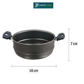 Panela cozimento vapor vaporella 16 antiaderente 3x1 grafite Panela cozimento vapor vaporella 16 antiaderente 3x1 grafite Benefícios: As panelas ramos, trazem não só a beleza, como a mostra qualidade de um produto bom, durável e ideal para a sua cozinha, com tamanho prático, fundo com cantos arredondados para facilitar o cozimento e a limpeza e cabos alongados para não aquecer com a chama do fogo. Características: Panela 3x1 = panela de cozimento a vapor cozivapor , lava arroz, caldeirão antiaderente alumínio 16 cm. A panela cozivapor é ideal para fazer receitas no vapor, cozinha seus legumes em 15 minutos, e seus legumes não perdem sabor e cor. Muito usada para aquecer o arroz e o feijão, mantendo solto, como o feito na hora. Além de economizar gás, pois você usa uma única boca do fogão. Toda em alumínio, ele possui revestimento antiaderente na cor grafite, permitindo que você faça alimentos muito mais saudáveis, já que não precisa utilizar óleo. Além disso, ela tem as alças e pegadores em baquelite garantindo muito mais segurança e facilidade no manuseio, já que não esquentam. E ela ainda tem capacidade para 2 litros, ideal para toda a família. Sua tampa em alumínio e com saídas de vapor proporcionam um cozimento mais rápido e uniforme. Desfrute da praticidade e eficiência desta Qualidade, funcionalidade e acima de tudo, praticidade - material: alumínio- cor: grafite - espessura: 1,5 mm - revestimento: antiaderente - diâmetro: 16 cm - altura panela: 15 cm- capacidade: 2 litros - peso 300 g Uso seguro e adequado Ao utilizar utensílios quentes tenha cuidado redobrado. Se necessário, utilize proteção para as mãos e mantenha fora do alcance de crianças. Para sua segurança, ao utilizar utensílios com cabos, mantenha os mesmos sempre voltados para o centro do fogão. Ao utilizar seu utensílio em fogões com grade, mantenha a peça centralizada e alinhe o cabo com a grade, para reduzir o risco de queda.