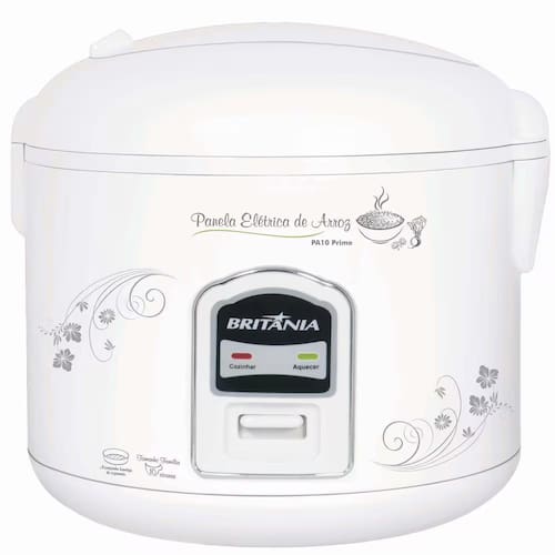 Alimento tradicional da culinária brasileira, o arroz é apreciado em quase todas as casas espalhadas pelo país. Entretanto, há diversas maneiras de prepará-lo, com diferença de ingredientes, temperos e, agora, de forma de preparo. A Panela Elétrica de Arroz Britânia é linda, com estampas florais e detalhes na cor vermelho e vai deixar sua cozinha ainda mais bonita e equipada. Com capacidade total para 10 xícaras de arroz, ela faz receitas de para todos os tamanhos, inclusive o tamanho família. É só colocar o arroz, a água e seguir os procedimentos de uso, além de arroz, você pode fazer outras receitas, como arroz integral, arroz à grega, risotos e até arroz doce. Versátil, com a Panela Elétrica de Arroz Britânia você consegue preparar deliciosos mingaus, fondue de queijo e muito mais. Ela é capaz de conservar o aroma e o sabor dos alimentos. Acompanha bandeja perfurada para você preparar legumes e verduras no vapor, mantendo os nutrientes e vitaminas dos alimentos, sem perder o sabor. Mantém o arroz aquecido após pronto e com cabo removível, pode ser levada à mesa na hora de servir. A tigela é antiaderente, super fácil de limpar. É só colocar os ingredientes na panela, seguir as instruções de uso e deixar que ela faça o serviço por você, assim fica livre para realizar outras atividades. Com a Panela Elétrica de Arroz Britânia você faz refeições completas com o seu tempero preferido para a família toda.