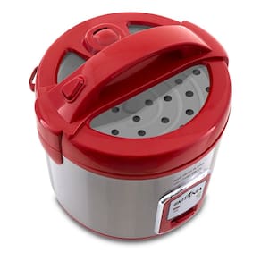 Tampa totalmente vedada com Visor Glass, botão de travamento, bandeja coletora de água e saída de vapor. Acessórios que não riscam o revestimento antiaderente. Sistema de aquecimento automático. Bandeja perfurada para cozinhar legumes no vapor. Desligamento automático após o preparo. Função manter aquecido. Luzes indicam modo cozimento e aquecimento. Tigela em alumínio com revestimento antiaderente removível. Escalas para dosagem. Tampa com saída de vapor e vedação. Saída de vapor removível. Coletor de água removível. Acompanha colher de plástico e copo dosador. Suporte para colher. Cordão elétrico removível. Acabamento em aço inox. Sistema de segurança contra superaquecimento.Lâmpada piloto