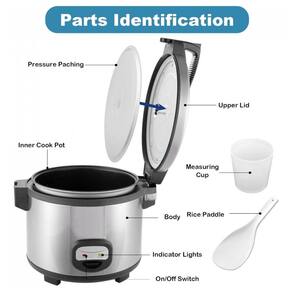 Prepare grandes quantidades de arroz com a Panela de Arroz Comercial de 60 Copos. Este modelo de panela de arroz comercial prepara 30 copos (180 oz) de arroz cru por vez, ideal para restaurantes, bares de sushi e serviços de buffet. Com eficiência industrial, serve até 50 porções. Construção em Aço Inoxidável Isolado de Parede Dupla mantém a umidade e o calor ideais por até 4 horas. Operação Simplificada com Manutenção Automática do Calor. Desenvolvido para cozinhas de alta demanda, este modelo de panela de arroz conta com controles intuitivos, mantendo o arroz aquecido após o cozimento. Sistema de Limpeza Fácil e Certificado de Segurança garantem praticidade e conformidade com normas sanitárias. Versátil e Extra Grande, este modelo atende desde cozinhas comerciais até encontros familiares, incluindo copo medidor, pá de arroz e panela antiaderente. Uma solução completa para diversos tipos de arroz.