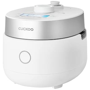 Panela de Arroz CUCKOO com aquecimento por indução, capacidade para 3 xícaras de arroz cru (6 cozido), 15 modos de preparo, função de voz e autolimpeza. Acompanha espátula, copo medidor e tigela de aço inox.Lâmpada piloto