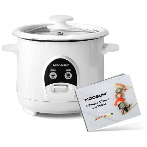 Panela de Arroz Elétrica 0,6 Litros em Aço Inoxidável com Cesto Antiaderente, 110V, MOOSUM, Branca