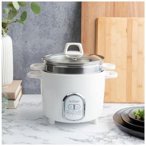 Design preocupado com a saúde Nossa série NutriWare é feita com um pote interno composto exclusivamente de aço inoxidável 304 de qualidade alimentar. Isso evita cozinhar com revestimento antiaderente e oferece uma abordagem mais saudável para suas receitas favoritas, como sopas, ensopados, pimenta e muito mais. Capacidade e Dimensões Nossa multicooker NutriWare tem uma espaçosa capacidade cozida de 14 xícaras feita com aço inoxidável grau cirúrgico e uma bela tampa de vidro temperado. Programação fácil de usar Nossa linha NutriWare também é um membro orgulhoso de nossa mentalidade de operação simples de um toque. Esses produtos são fáceis de usar com a operação de um toque que muda para Manter Aquecido automaticamente assim que o cozimento termina, permitindo que você recupere seu tempo em vez de se preocupar enquanto cozinha. Acessórios O fogão Nutriware vem com tudo o que você precisa para começar a cozinhar refeições saudáveis e deliciosas direto da caixa Este fogão vem com uma tentativa de vapor de aço inoxidável, copo medidor de arroz e uma pá de arroz. Perfeitamente rende 14 xícaras de arroz cozido Funções Arroz Branco, Arroz Integral, Vapor, Refogue e Simmer, Manter Aquecido Panela removível 100 aço inoxidável grau cirúrgico com tampa de vidro temperado